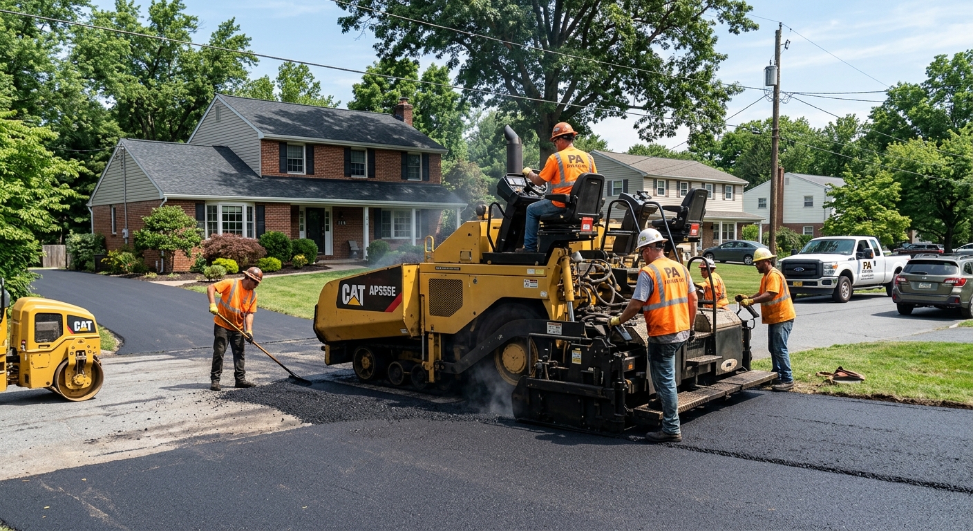 Our contractors use hot-mix asphalt from certified PA plants — proper compaction, grading and drainage included. Workmanship warranties on every Hamilton job.