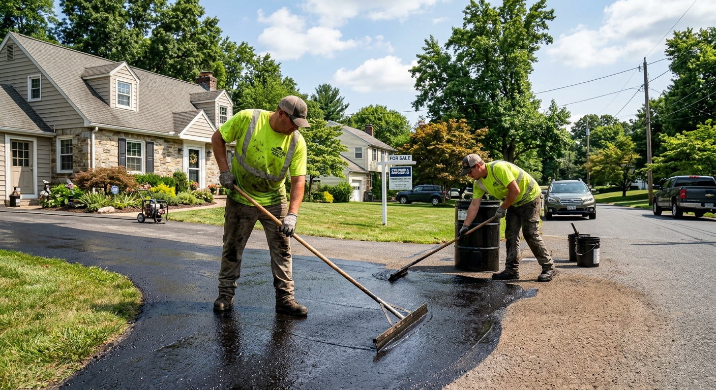 Hot-pour rubber crack filler and sealcoating prevent water infiltration and freeze-thaw damage in North Strabane's climate. Extends driveway life and prevents costly repairs.