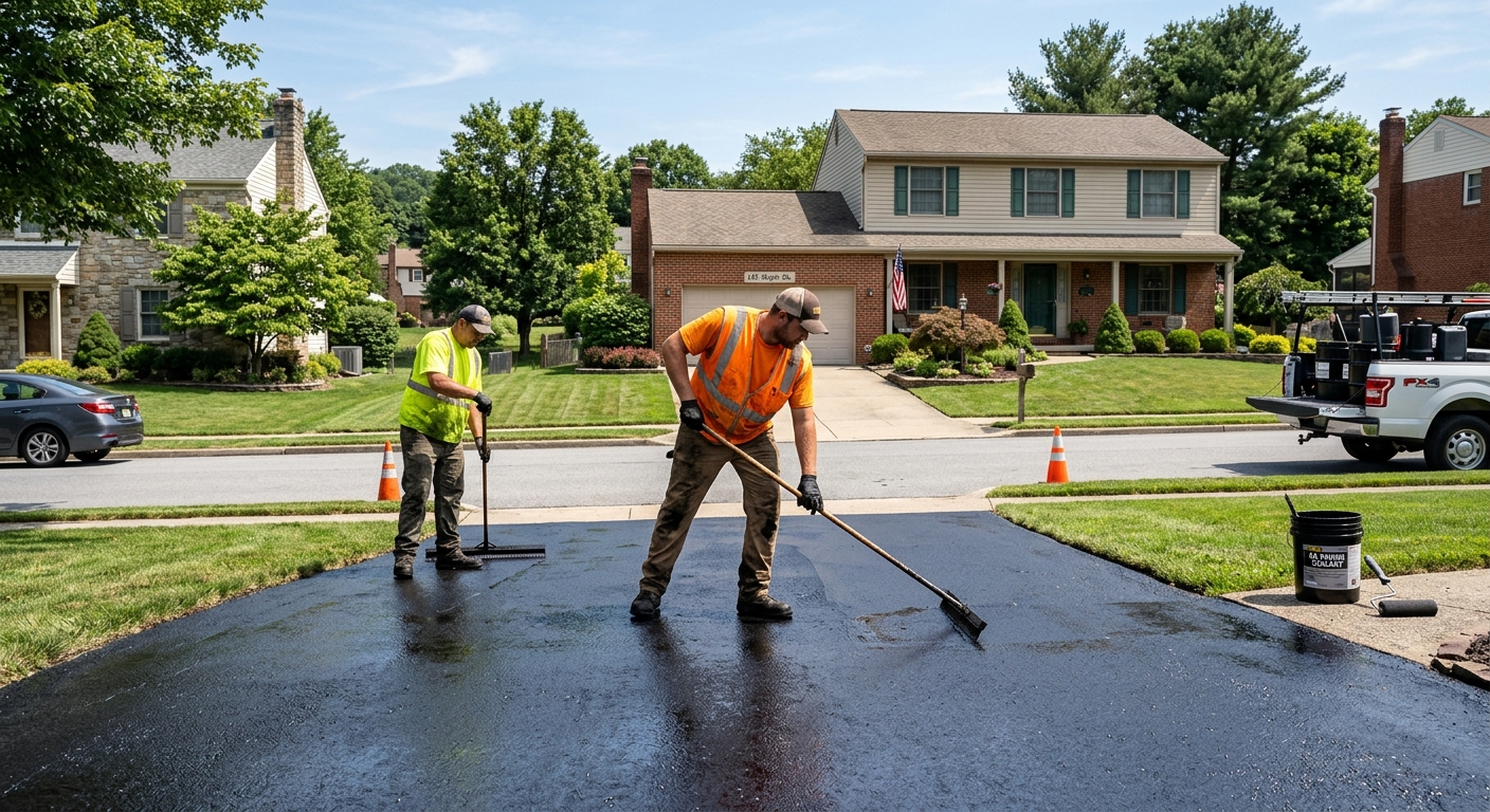 Hot-pour rubber crack filler and sealcoating prevent water infiltration and freeze-thaw damage in Springfield's climate. Extends driveway life and prevents costly repairs.